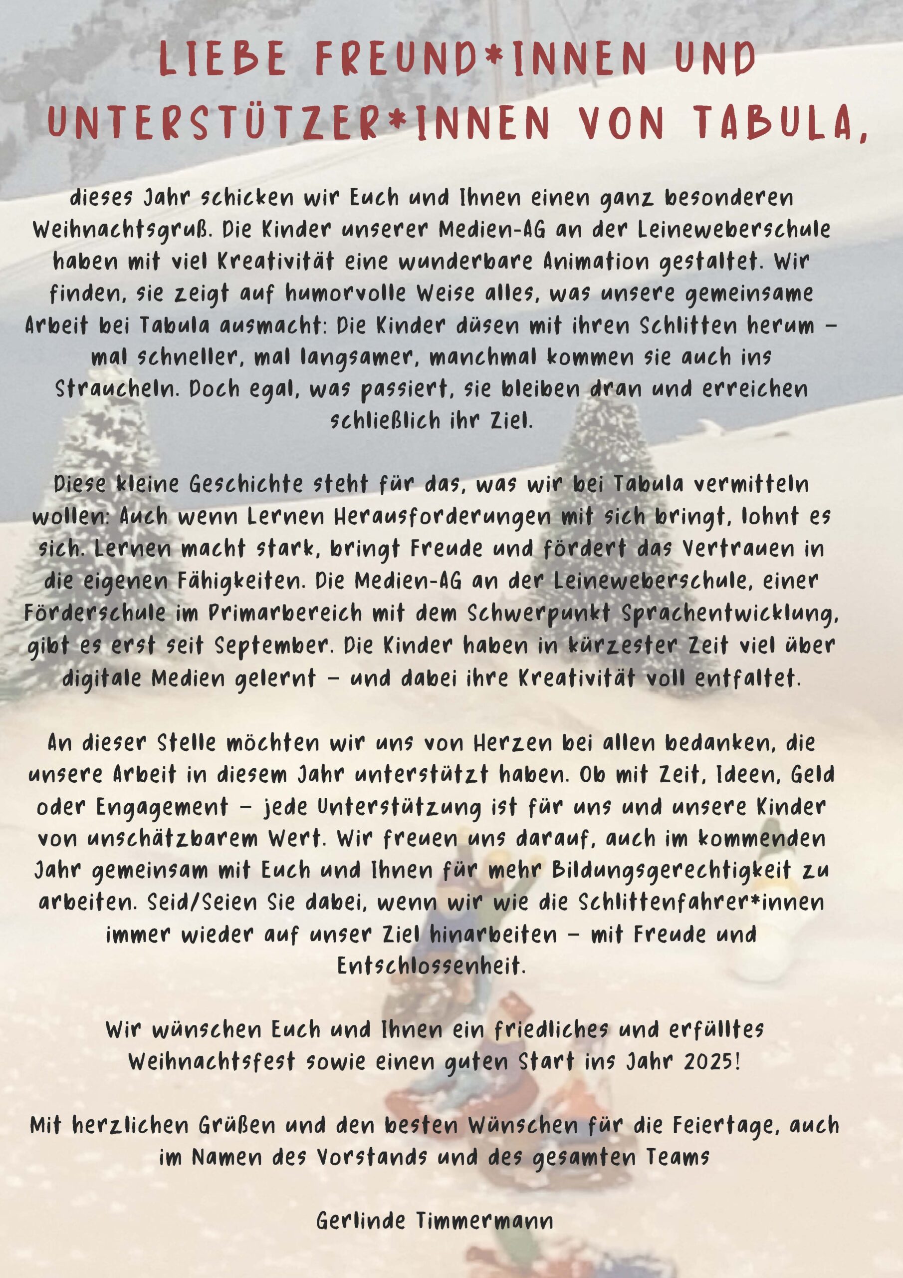 Liebe Freund*innen und Unterstützer*innen von Tabula,
